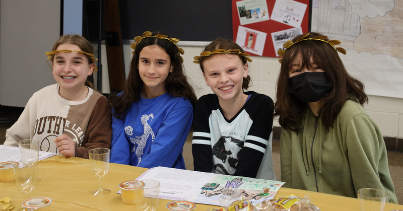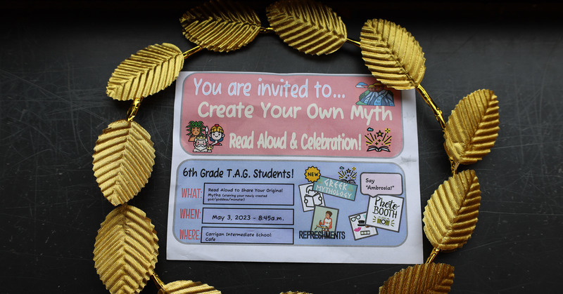 The students in the 6th-grade T.A.G. (Talented and Gifted) class celebrated the culmination of the Greek Mythology Unit with a Read Aloud and small celebration. We had a "photo booth" (Thank you Mrs. Blake!), a small breakfast, and some guests!